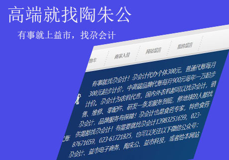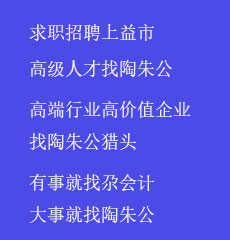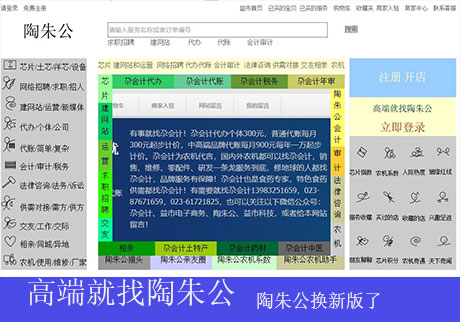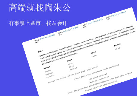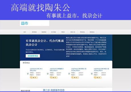 高端就找陶朱公。陶朱公是新成立的一家电子商务综合服务平台,以网络招聘,代理记账,和建网站为主,如果有这方面的需要都可以在我们平台注册会员用户。 我们已有四大微信公众号:尕会计、益市电子商务、益市科技、陶朱公科技,可以随时关注和提出需求,我们都可以第一时间及时响应和回复,以服务全国统一大市场。 尕会计和陶朱公品牌平台可以为各种创业团队和企业管理团队提供所有商业模式的谋士军师智囊联盟操盘手角色类似无人驾驶辅助系统一样的智能导航平台服务的中高端法律财税科技管理指挥策划路径设计和执行战略战术咨询服务以百分之二流水报酬率且每单至少十万块钱起步计价。